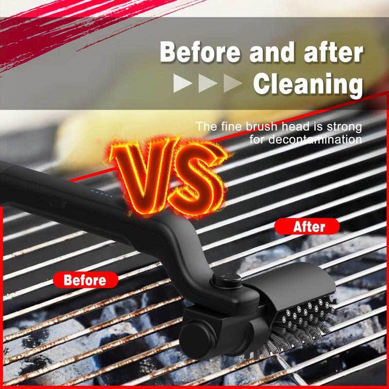 🔥Electric BBQ Grill Brush Cordless and Rechargeable Stainless Steel Bristles,Two Cleaning Brushes,Adjustable Angle