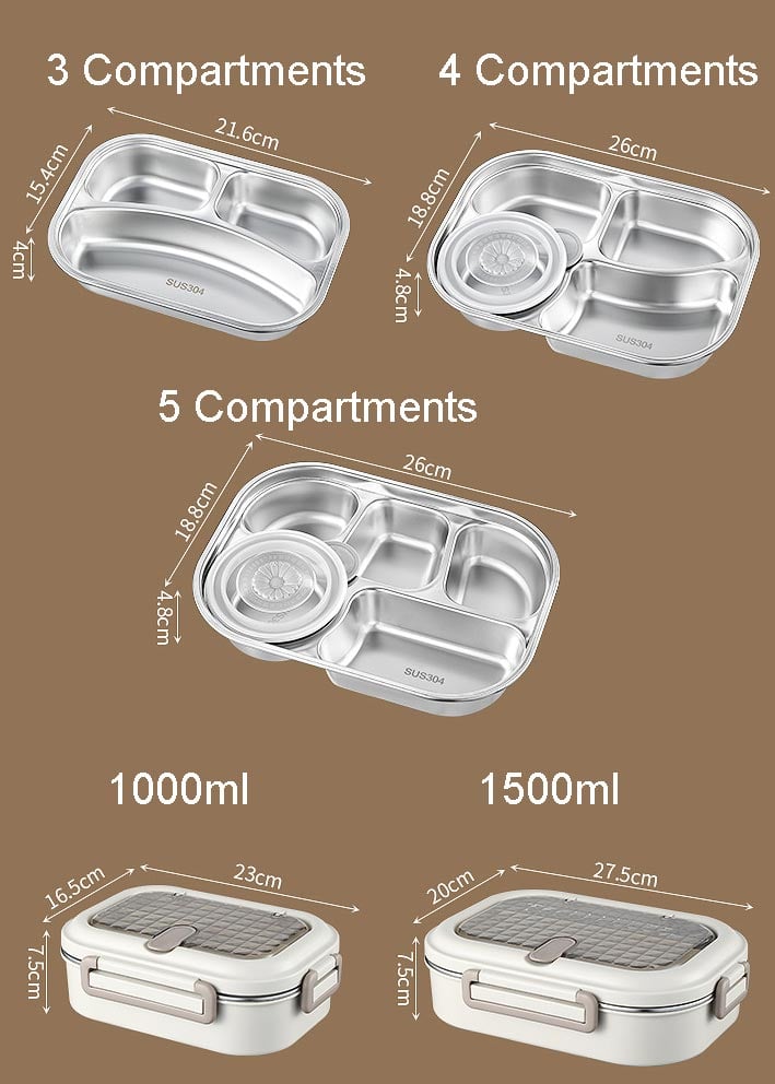 Capacity: 3 Compartments (1000ml), 4 Compartments (1500ml), 5 Compartments (1500ml)