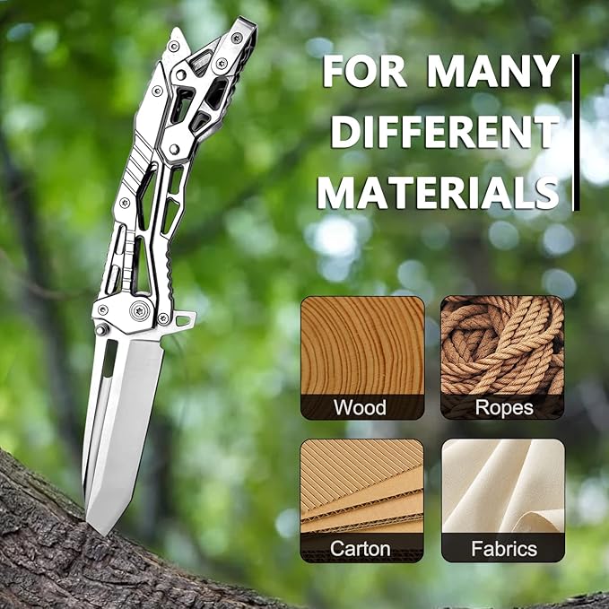 【Suitable for Various Occasions】: The folding knife can be used for camping, hunting, mountaineering, fishing, tactical equipment, daily carrying, etc. Additionally, it is an excellent self-defense knife that conveniently folds into a small, lightweight design and is easy to carry around.