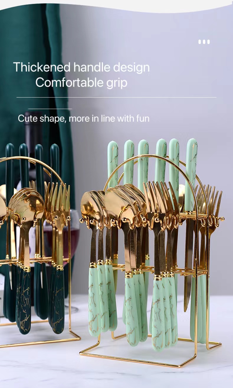 【Fine cutlery set】The cutlery set modern design, elegant, refined and generous. It brings an elegant feel to the dining table. Let every meal bring more atmosphere and happiness to you!