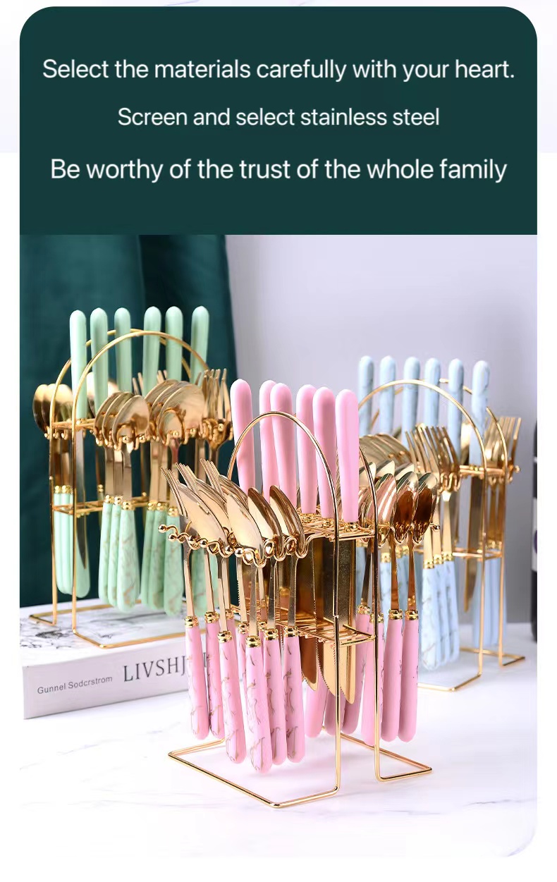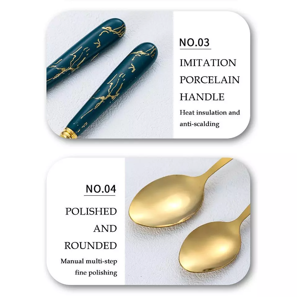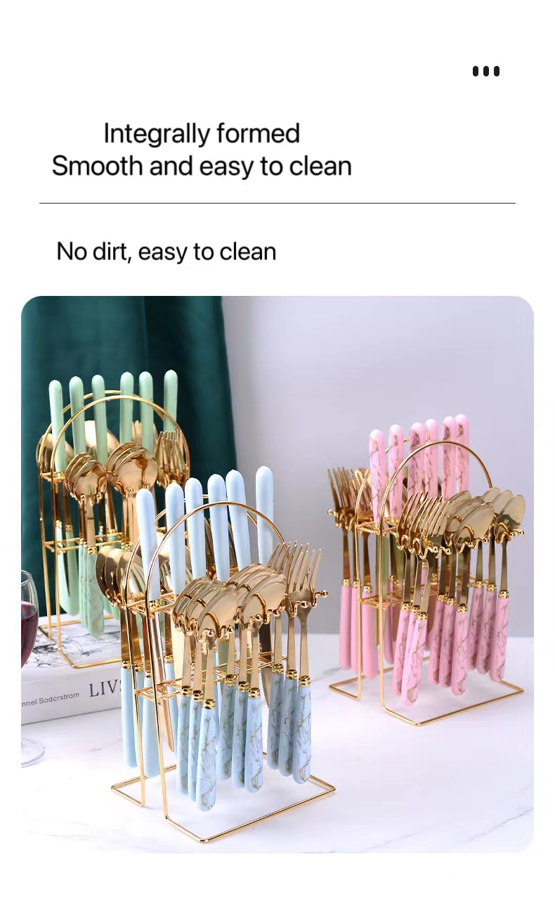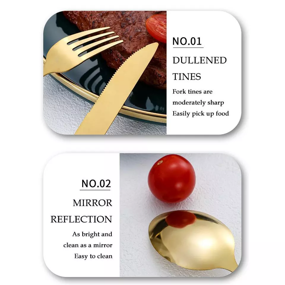 【Stainless steel material】This silverware set is not only aesthetically pleasing, but also highly practical. Our flatware set is made of premium stainless steel, which is not easy to accumulate dirt. The carefully designed tableware shape not only conforms to ergonomic principles, but also showcases elegant dining etiquette. Choose our luxurious and elegant knife and fork set to give your dining table a unique charm and become the symbol for your taste of life.