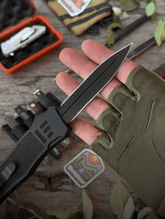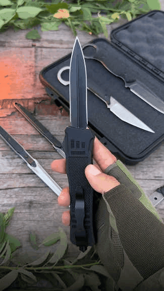 This knife features a sliding trigger that can be used with either hand. The handle is designed with ergonomic contours and thumb ramps, allowing for quick one-handed operation, enabling the blade to deploy and retract automatically for seamless action. The user can react swiftly in critical moments, always prepared for unexpected situations. Additionally, it is equipped with a reliable locking mechanism that prevents accidental closure, ensuring safety during use.