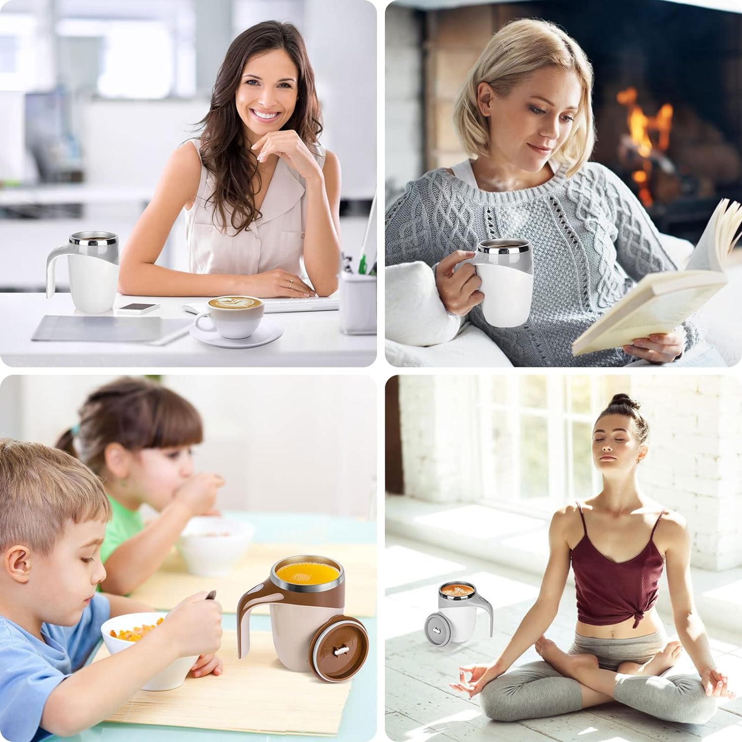 The Electric Self-stirring Coffee Mug Powered by two AAA batteries is a great accessory to have in your kitchen and office.