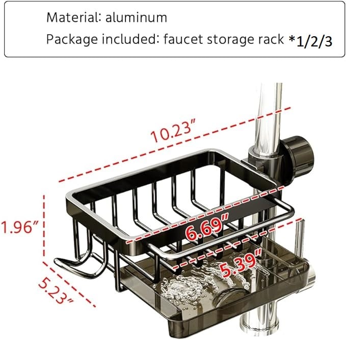 The faucet sponge holder can be used not only for the kitchen sink but also for the bathroom to store your shampoo, soap, and other items, get rid of clutter, and make your sink and countertops more organized. This faucet holder is very suitable for your kitchen, and bathroom.