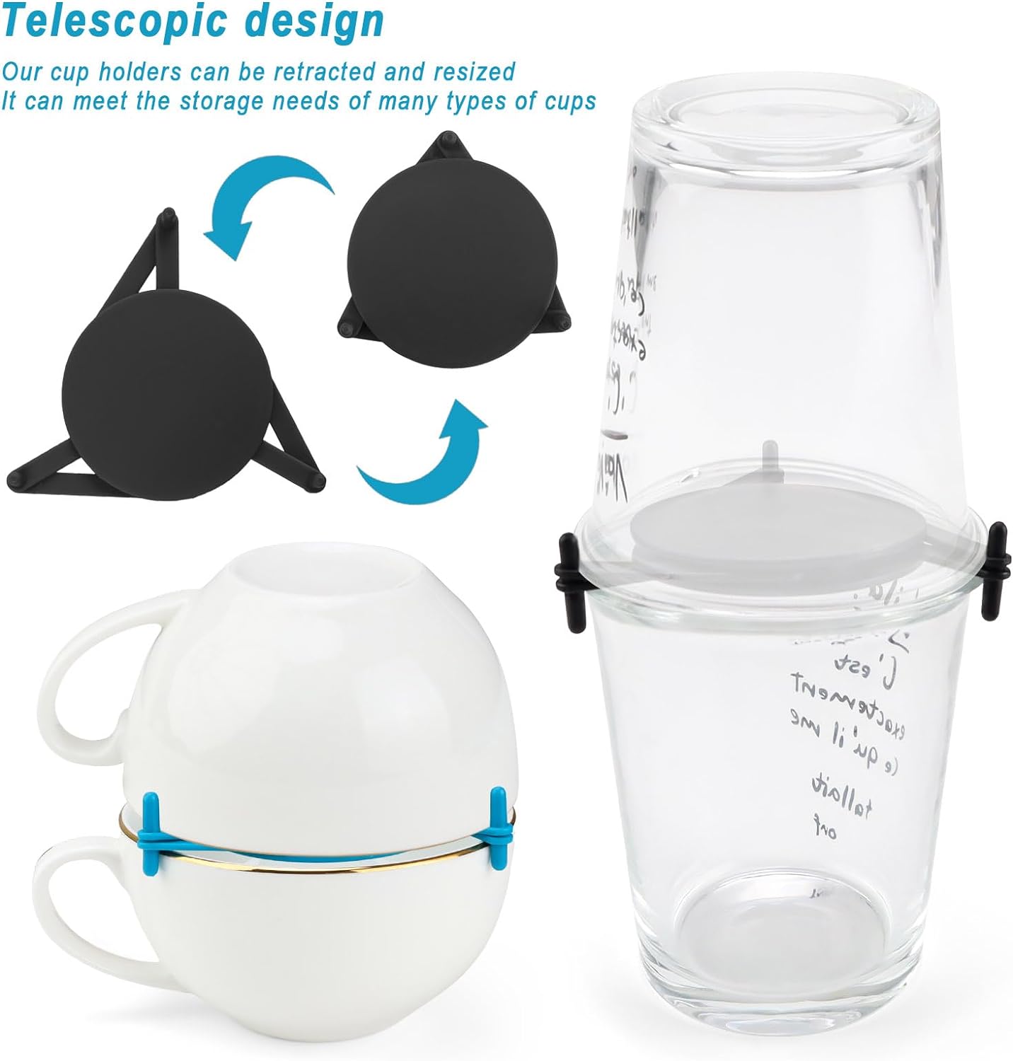- Very easy to use, just place one Stacker on top of a coffee cup, then set another one upside-down, right on top. Give the Stacker a gentle squeeze to adjust to the size, and your coffee cups are safe and sound, in just the right amount of space. Very practical kitchen organization and storage gadget.