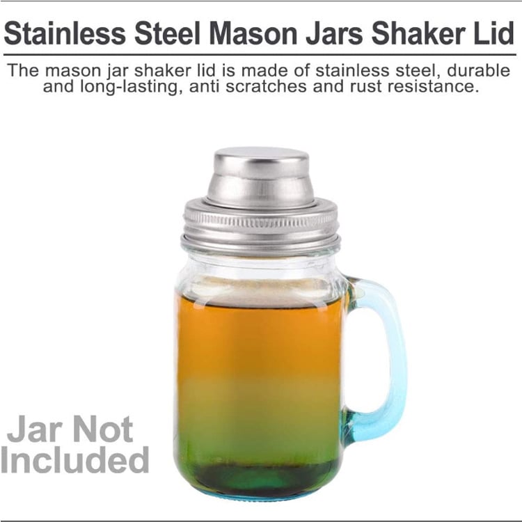 LEAKPROOF - Our Mason jar lids edges have ribbing for anti slip easy grip, easy open and tighten.·These Stainless Steel Mason jar Shaker Lid with silicone seals for regular mouth mason jars ,Lids fit most of regular mouth (74mm/2.9 inch) mason jar.not fit wide mouth mason jars.