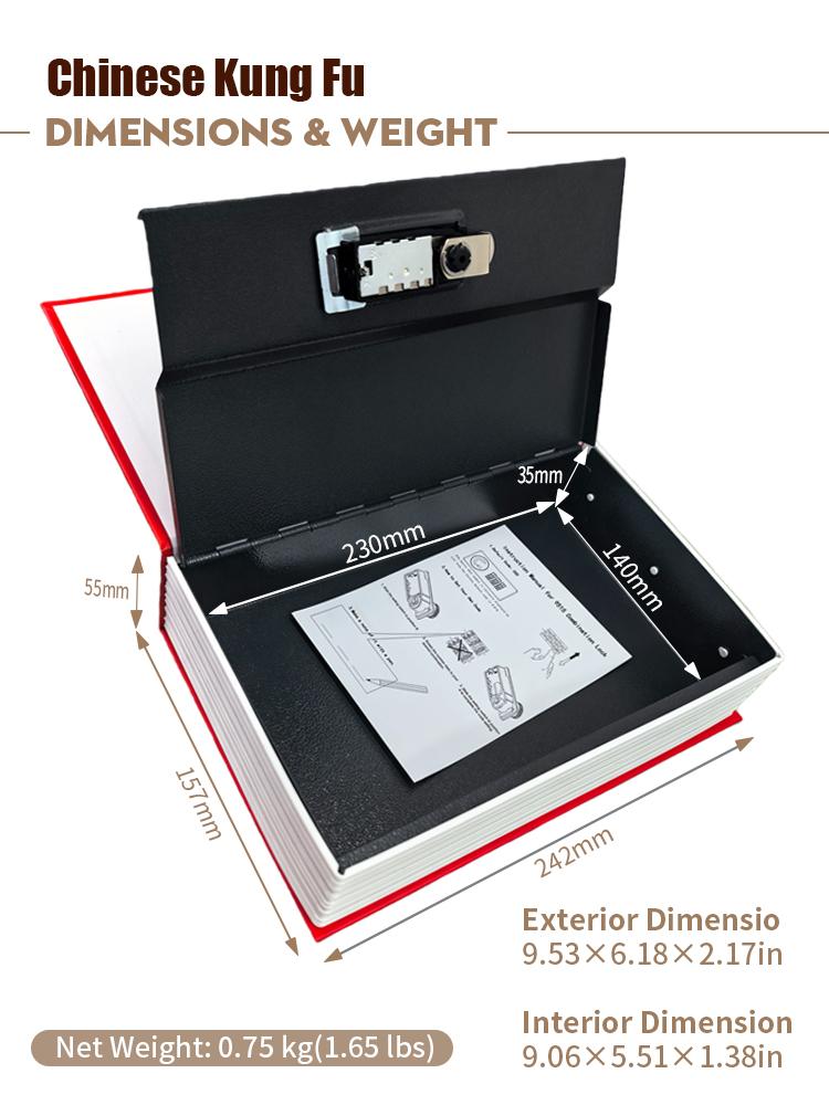 Looks just like a real book! The "Chinese Kung Fu" cover with martial arts silhouette blends perfectly into your bookshelf, desk, or nightstand—no one will suspect it’s a safe. Discreet, clever, and totally inconspicuous.